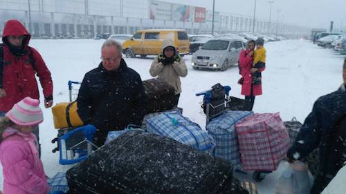 Since Monday December 18 it started snowing in abundance causing a lot problems on the roads! Because of the heavy snowfall many villages and towns are cut off from the outside world and even the busy highway from Odessa to Kiev – almost 500 kilometres – was hardly passable and more than 800 lorries were stuck on the slow lane. Here and there a little tent was put up to provide stranded drivers with hot drinks and soup. We too have to deal with bad luck during or after a trip, but that has become a part of life for us.